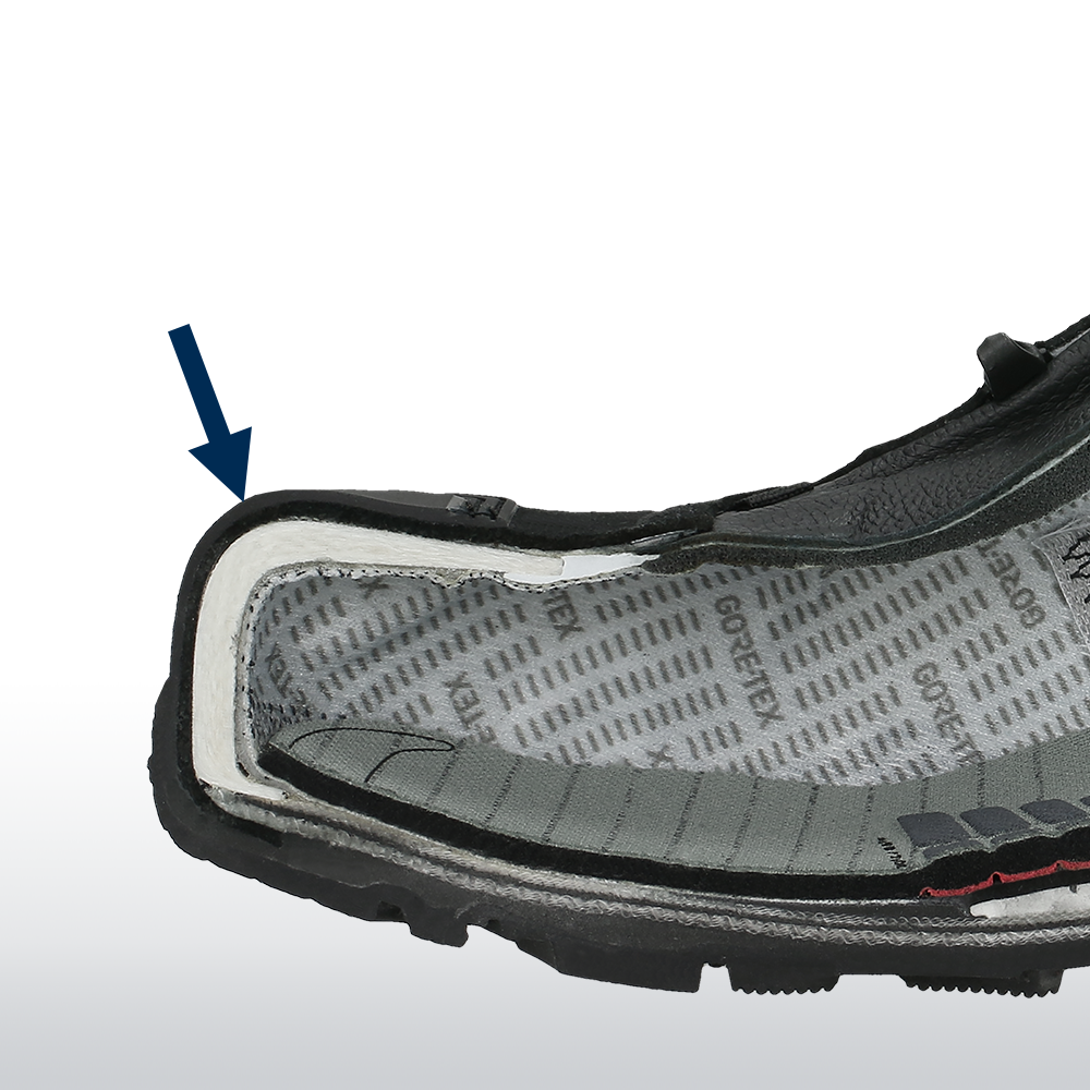 Falling objects cannot harm your feet in your BLACK EAGLE Safety 610 | V, GTX thanks to the built-in fibre composite toe cap. The abrasion-resistant TPU overcap on the toe of the shoe further reinforces this protection.