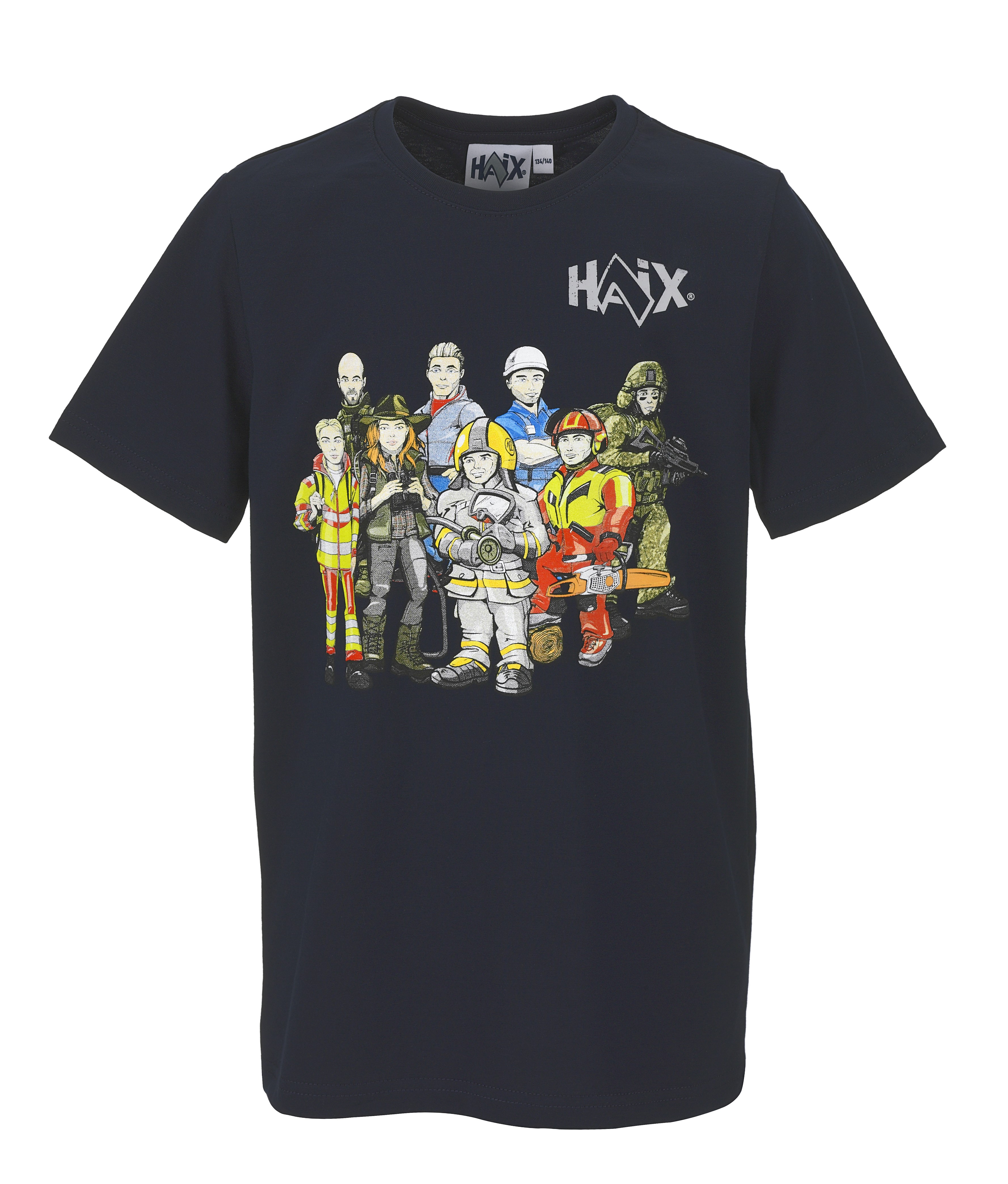 Little heroes with style: the Kids Shirt Heroes from HAIX® is a must-have for every child's wardrobe. The short-sleeved T-shirt in the colour navy is made from a blend of cotton and Lycra, making it comfortable to wear. The front features a comic version of our heroes as role models, while the back features our exclusive "Heroes Wear Haix" print. The shirt is suitable for children aged two and a half to 14 years.